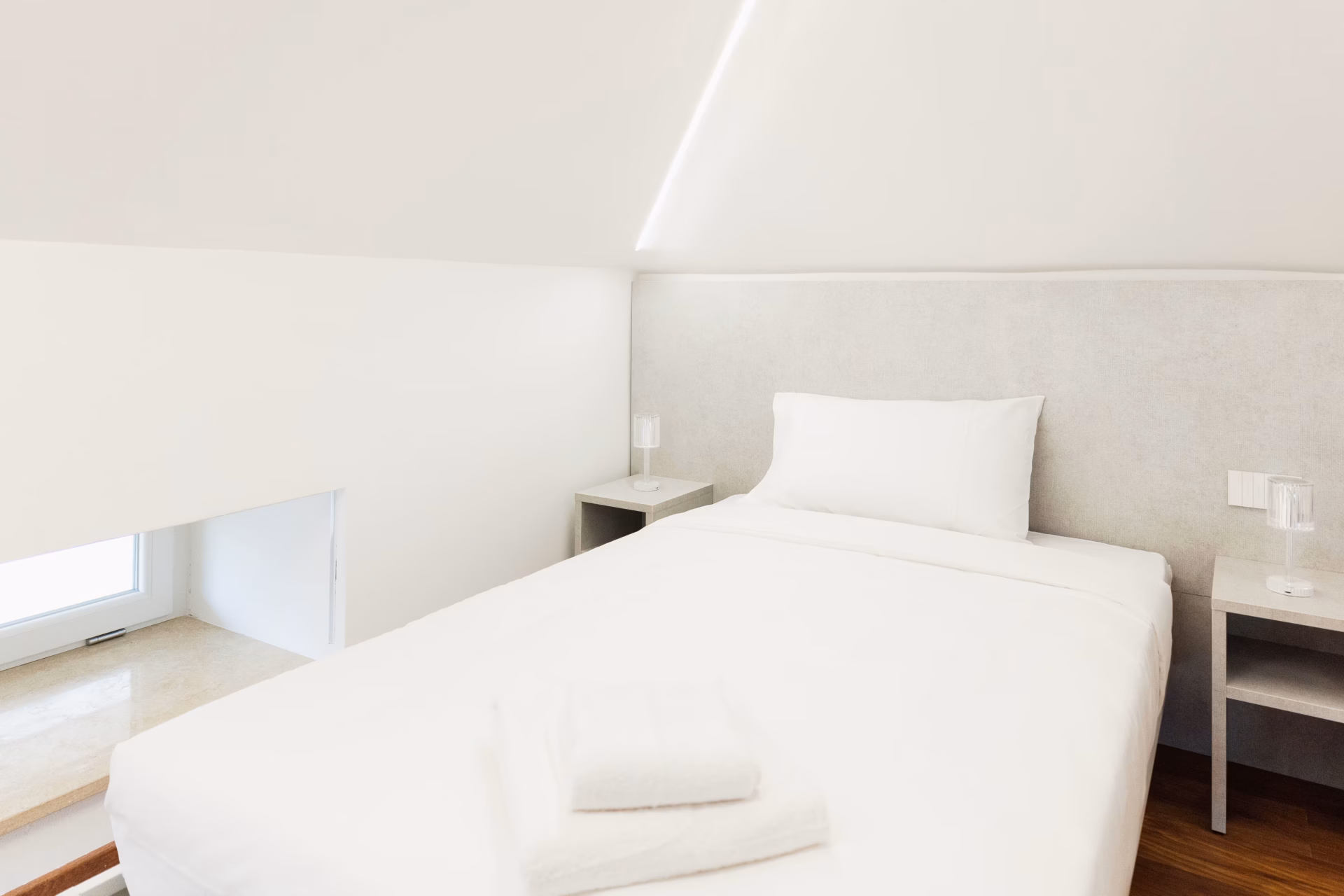 Questa camera singola, situata al secondo piano dell’abitazione, è arredata con un comodo letto a una piazza e mezza ed è pensata per garantire privacy e tranquillità a chi vi soggiorna. L’ambiente è raccolto e funzionale, ideale per chi viaggia da solo. La camera dispone di bagno privato e accesso alla cucina in comune, attrezzata con fornelli, microonde e lavastoviglie, per offrire agli ospiti la possibilità di preparare i propri pasti in autonomia.